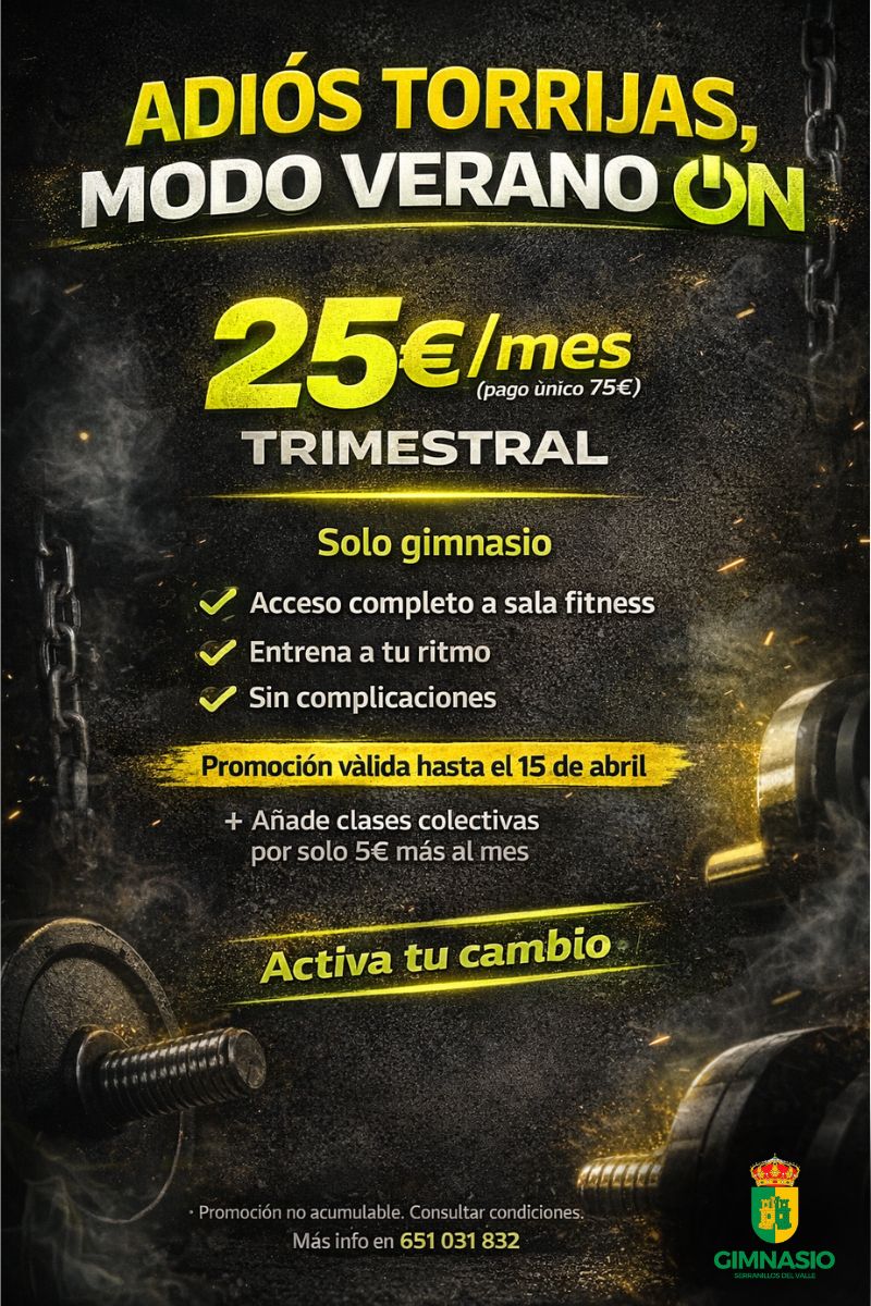 ==PROMO ESPECIAL SOLO GIMNASIO== 25€/mes (pago único 75€) Promoción válida hasta el 15 de abril
